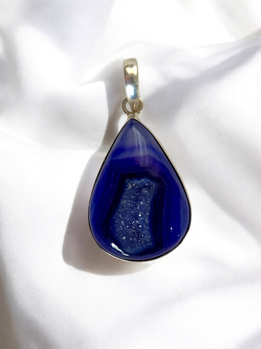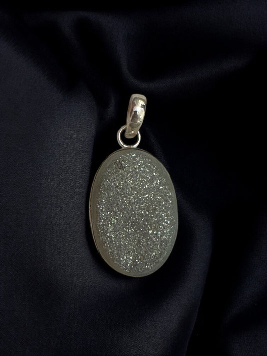 Colour Crave Druzy Agate Stone Pendant in White Alloy (With Chain)