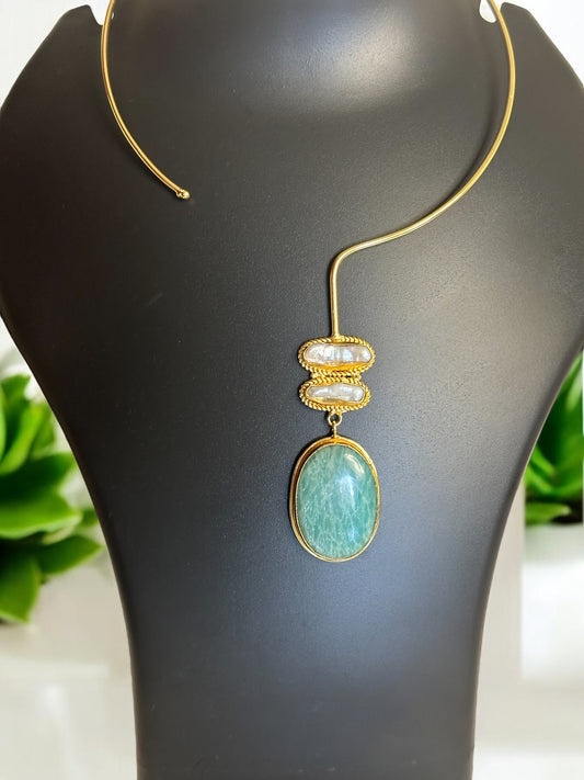 Blue Thritiya Baroque Pearl and Stone Statement Hasli