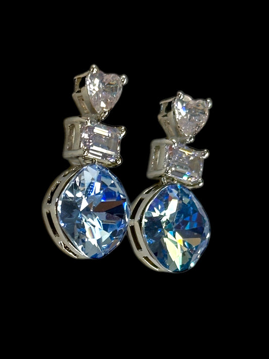 Blue Swarovski Crystal Octagonal Pendant With Studs