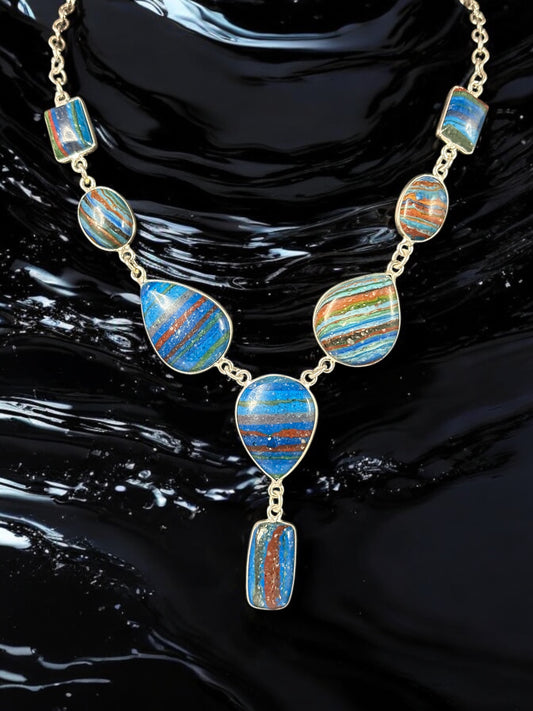 Royal Blue Doublet Stone Rectangular Pendant Set