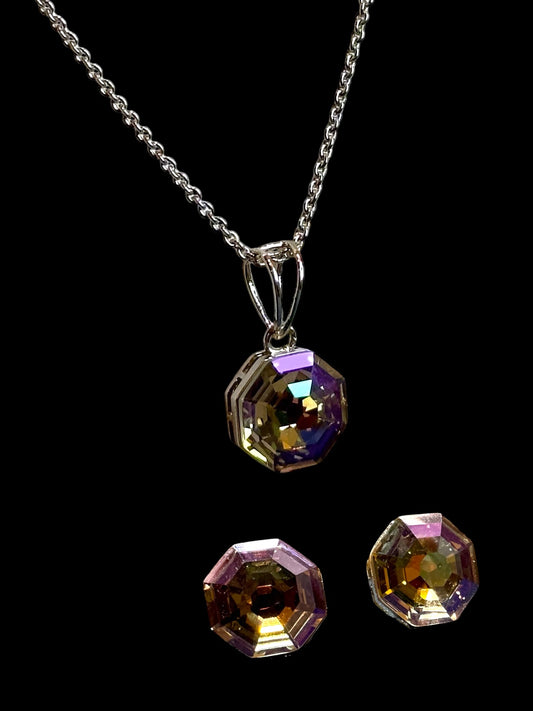 Purple Swarovski Crystal Octagonal Pendant With Studs