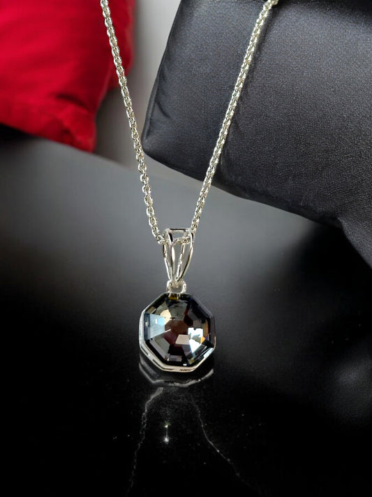 Black Swarovski Crystal Octagonal Pendant With Studs