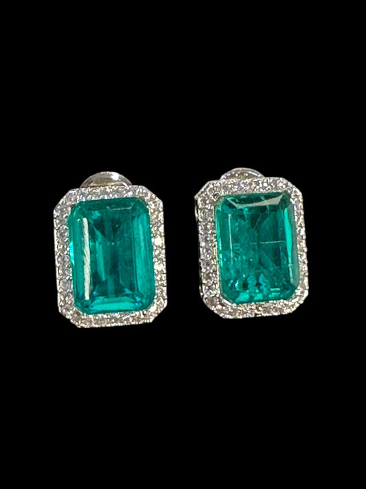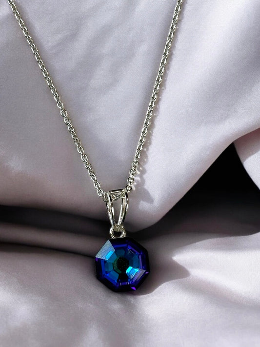 Blue Swarovski Crystal Octagonal Pendant With Studs