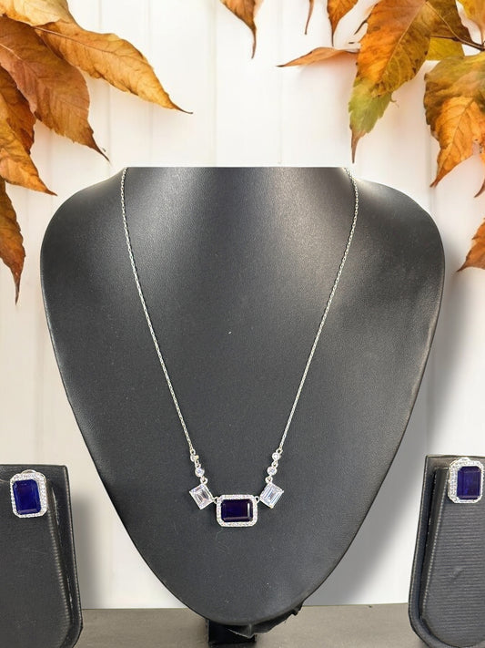 Royal Blue Doublet Stone Rectangular Pendant Set
