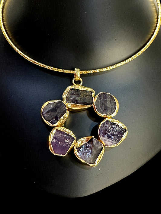 Purple Amethyst Machali Pachi Kundan Choker Set