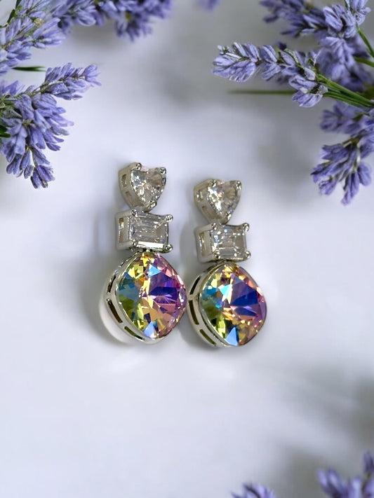 Purple Swarovski Crystal Octagonal Pendant With Studs