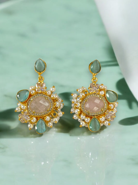 Blush Rose Quartz Pearl Loreal Earrings