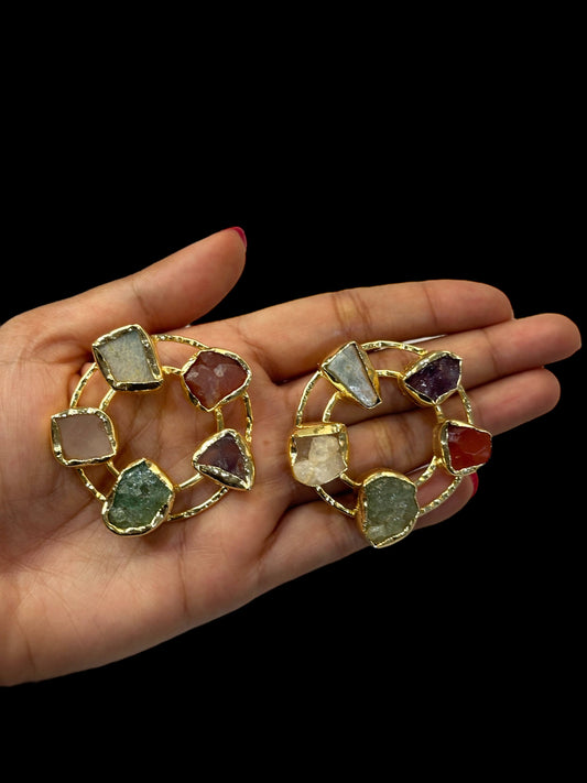 Multi Colour Stone Double Ring Studs