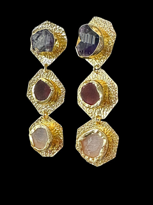 Multi Colour Tripple Stone Ladi Danglers