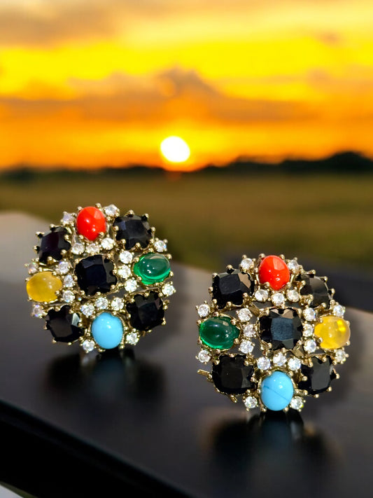 Black with Semi Precious Stone Oversized Studs