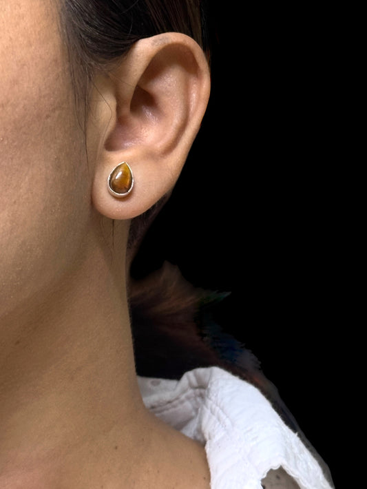 Brown Tiger's Eye Teardrop Minimal Studs