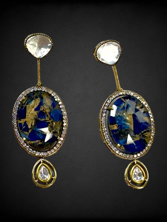 Oval Marble Stone Moissanite Polki Brass Earrings