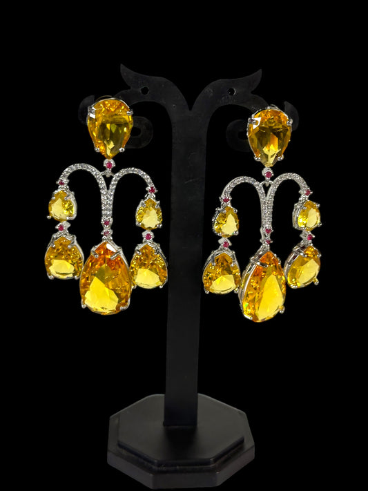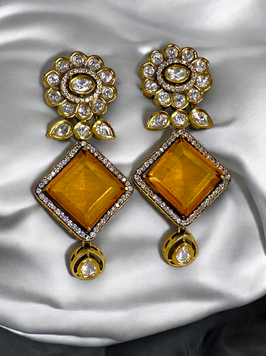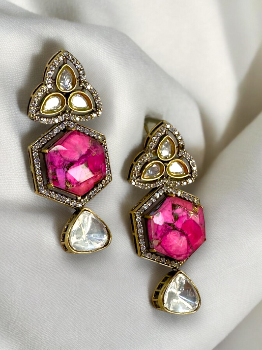 Hex Marble Stone Moissanite Polki Brass Earrings