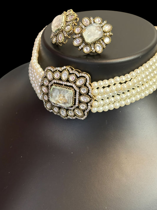 Seven Whispers Stone and Pearl Necklace Set with Earrings