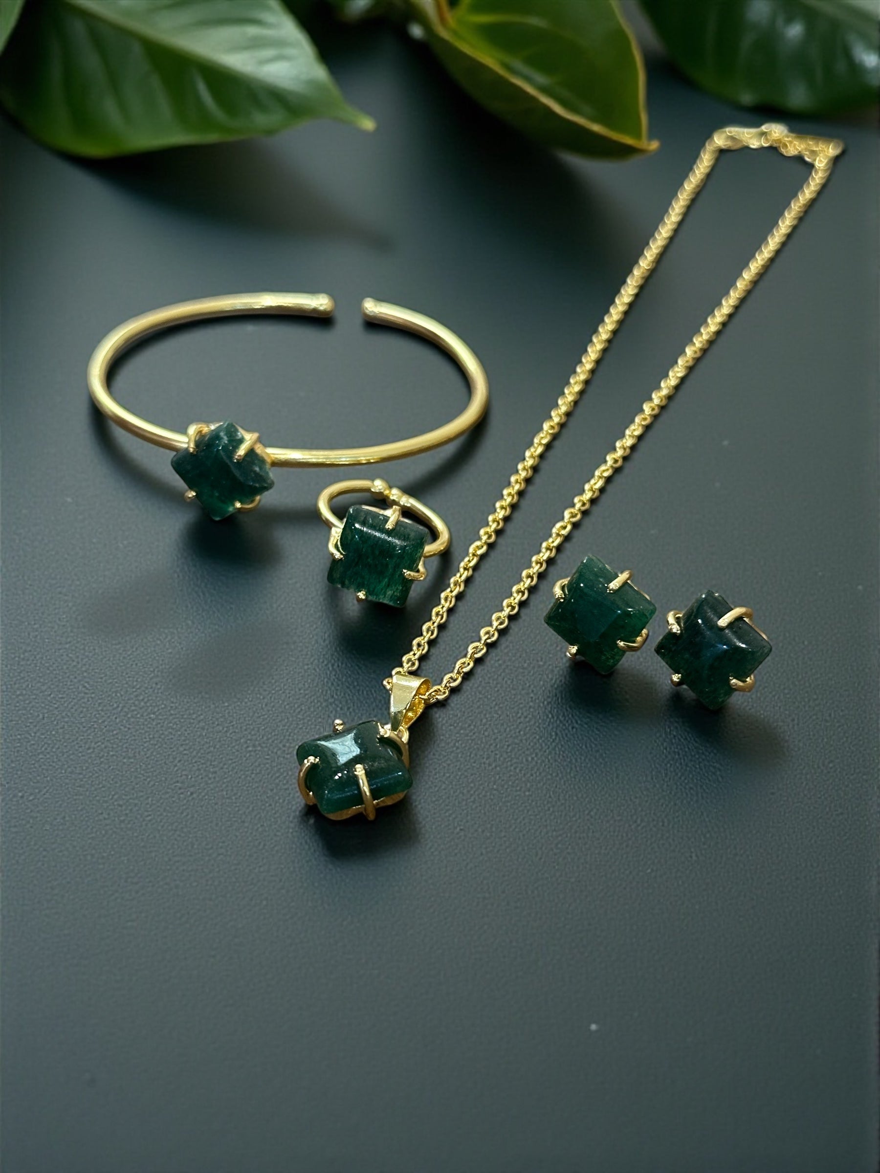 Minimalist and sleek polished green aventurine Pendant Set with studs, ring and bracelet. Handcrafted with real natural stones, it's the perfect everyday charm.