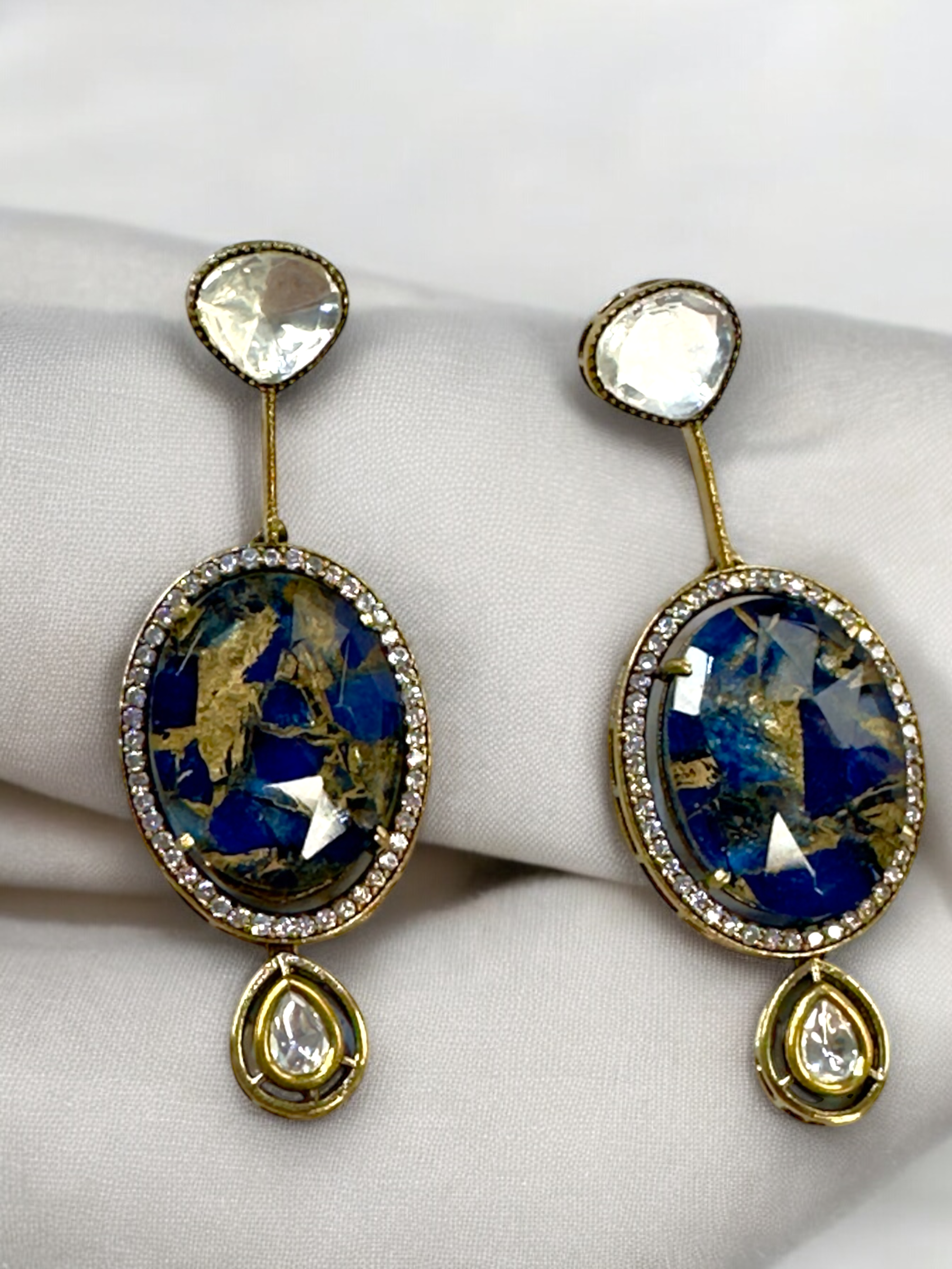 Oval Marble Stone Moissanite Polki Brass Earrings
