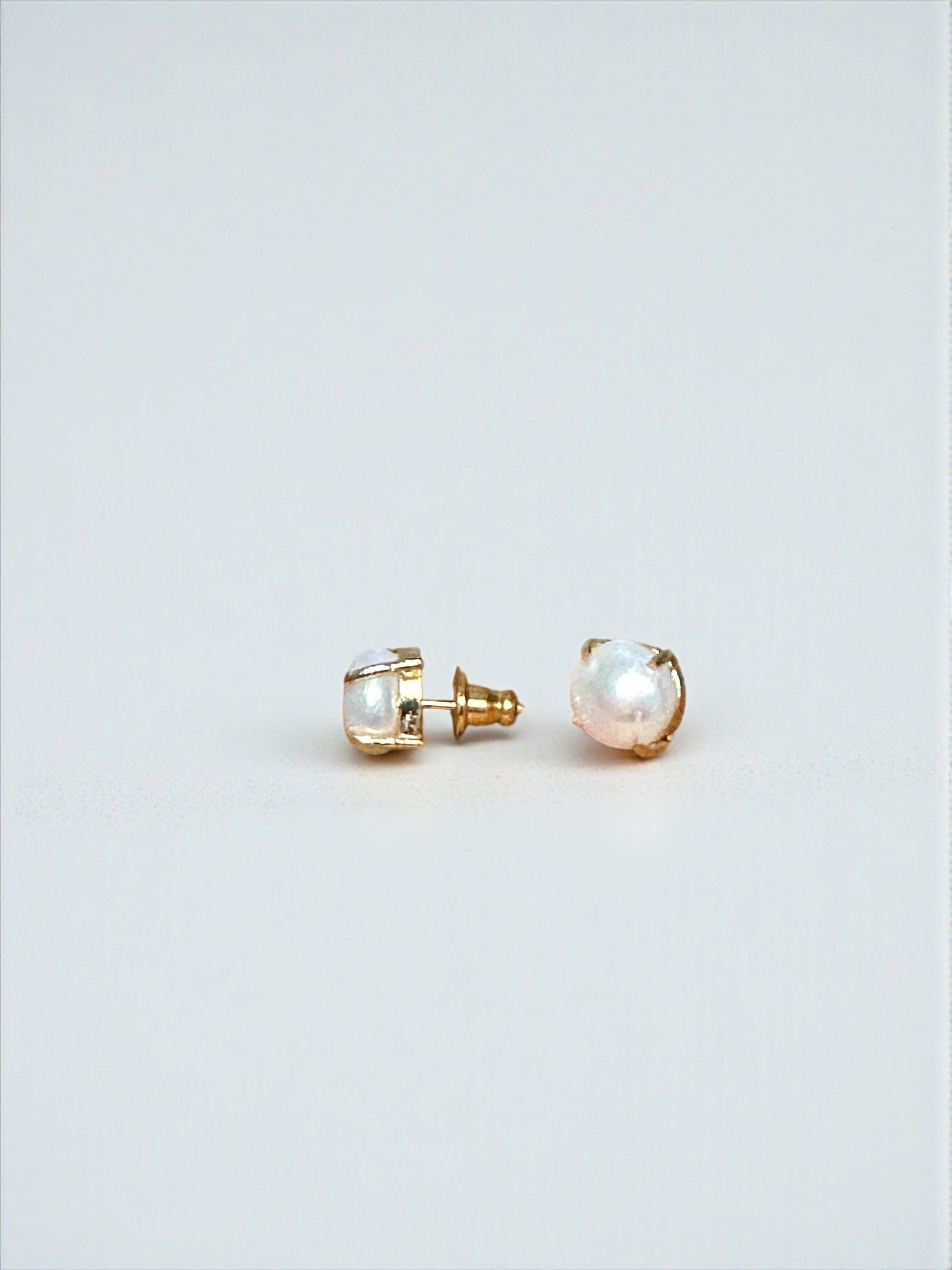 Classic freshwater pearl studs in gold plated brass in Claw setting.
