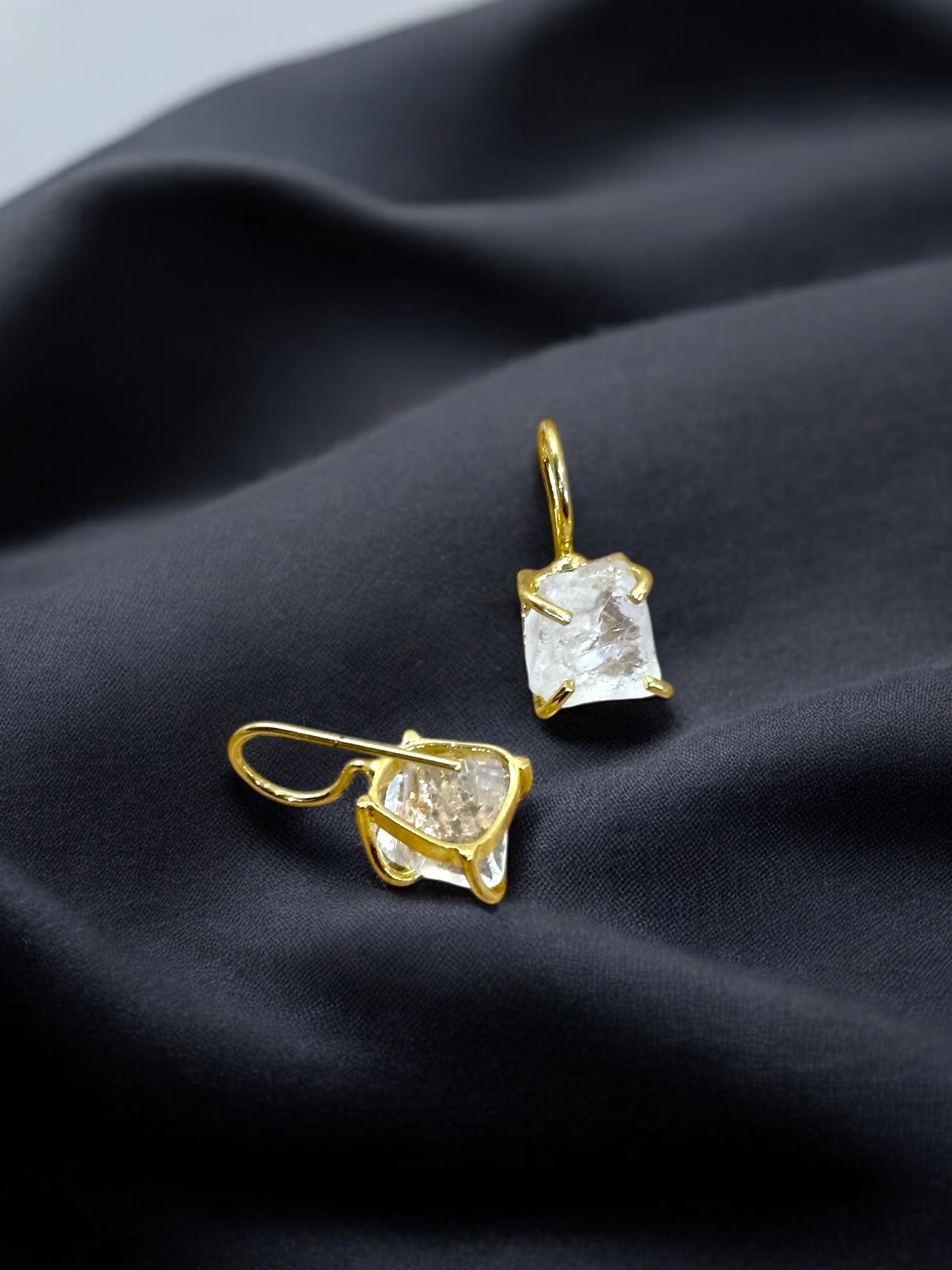 Clear Quartz Stone Studs in gold plated brass in drop hook setting.