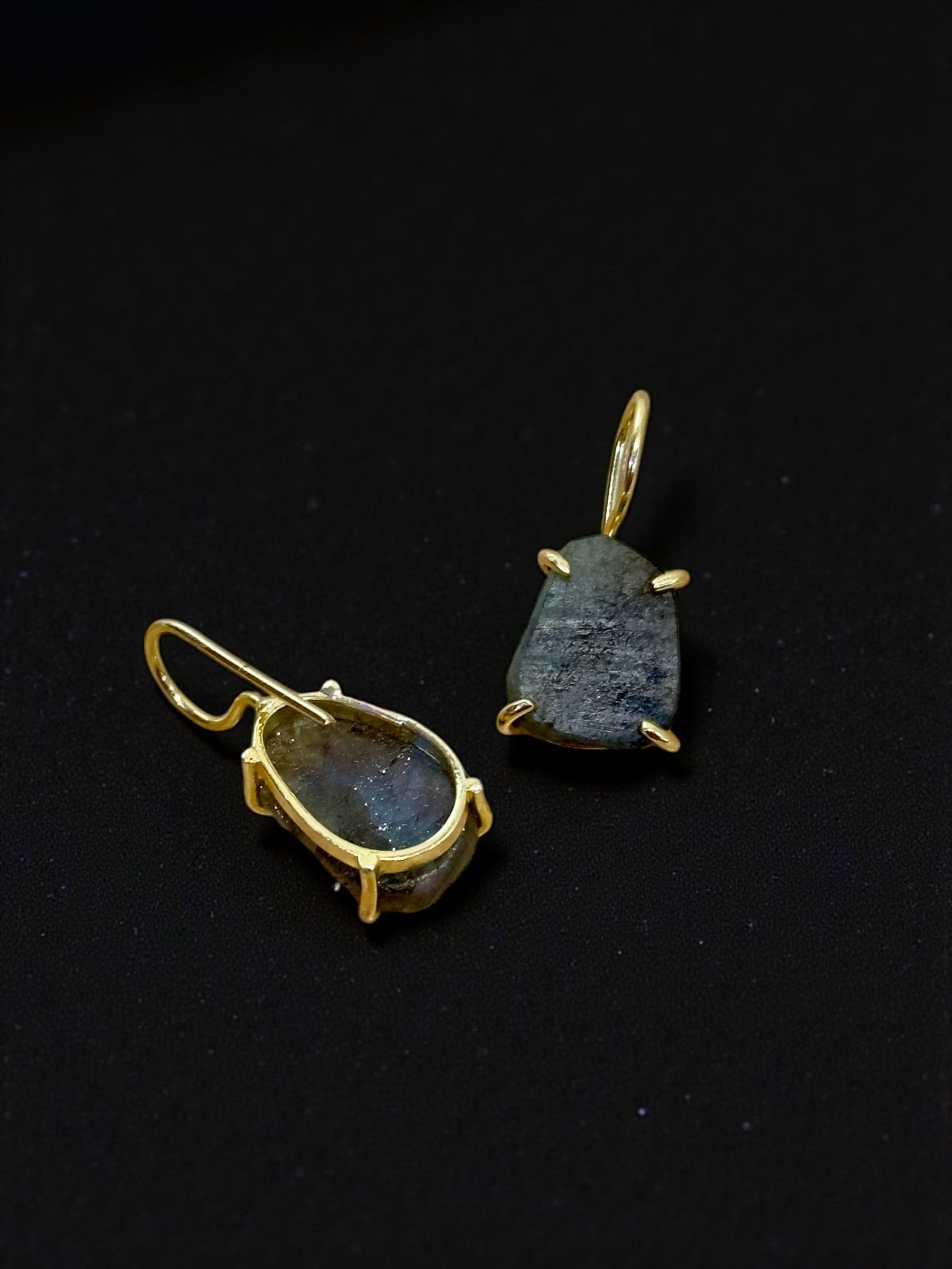 Labradorite Stone Studs in gold plated brass in drop hook setting.