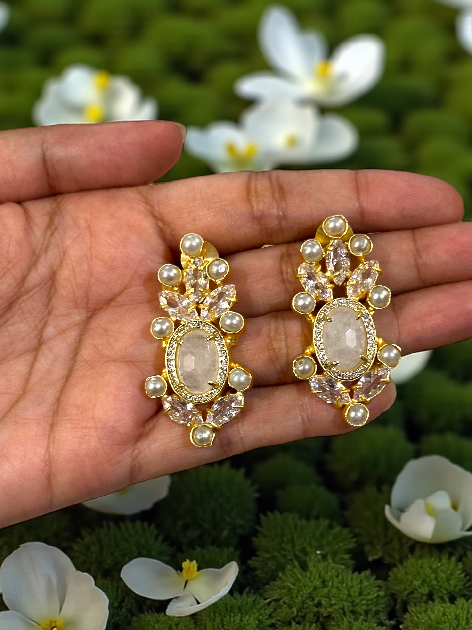 White Moonstone Pearl Loreal Earrings