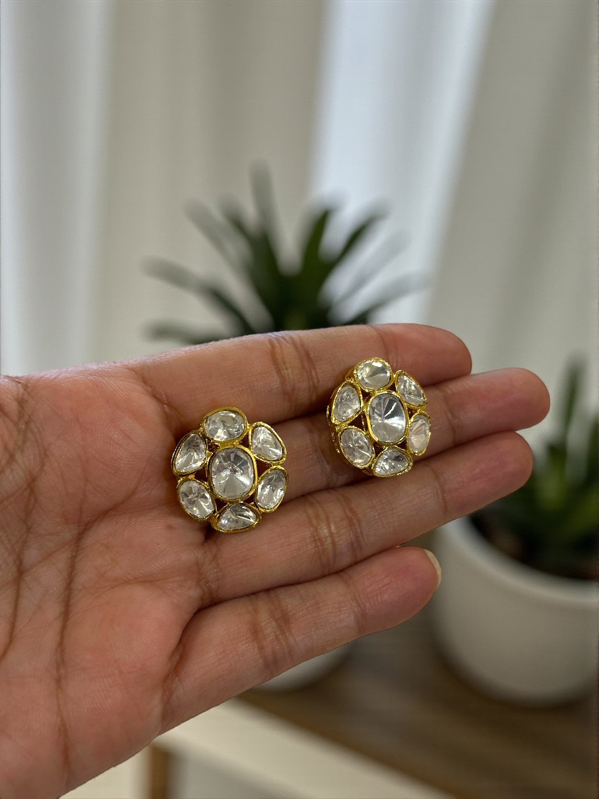 Tanisha Moissanite Polki Studs are crafted in gold-plated brass and designed with sparkling uncut Moissanite Polki stones.